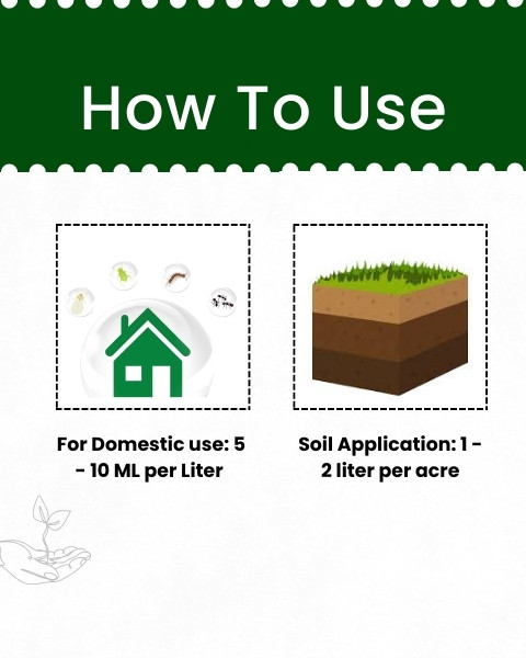 It is a safe, eco-friendly alternative to chemical insecticides and is suitable for use in agricultural fields, plantations, gardens, and organic farming systems, without posing risks to humans, animals, or the environment.