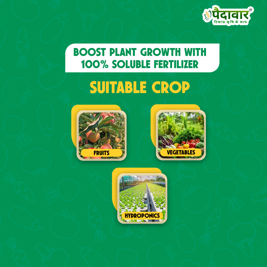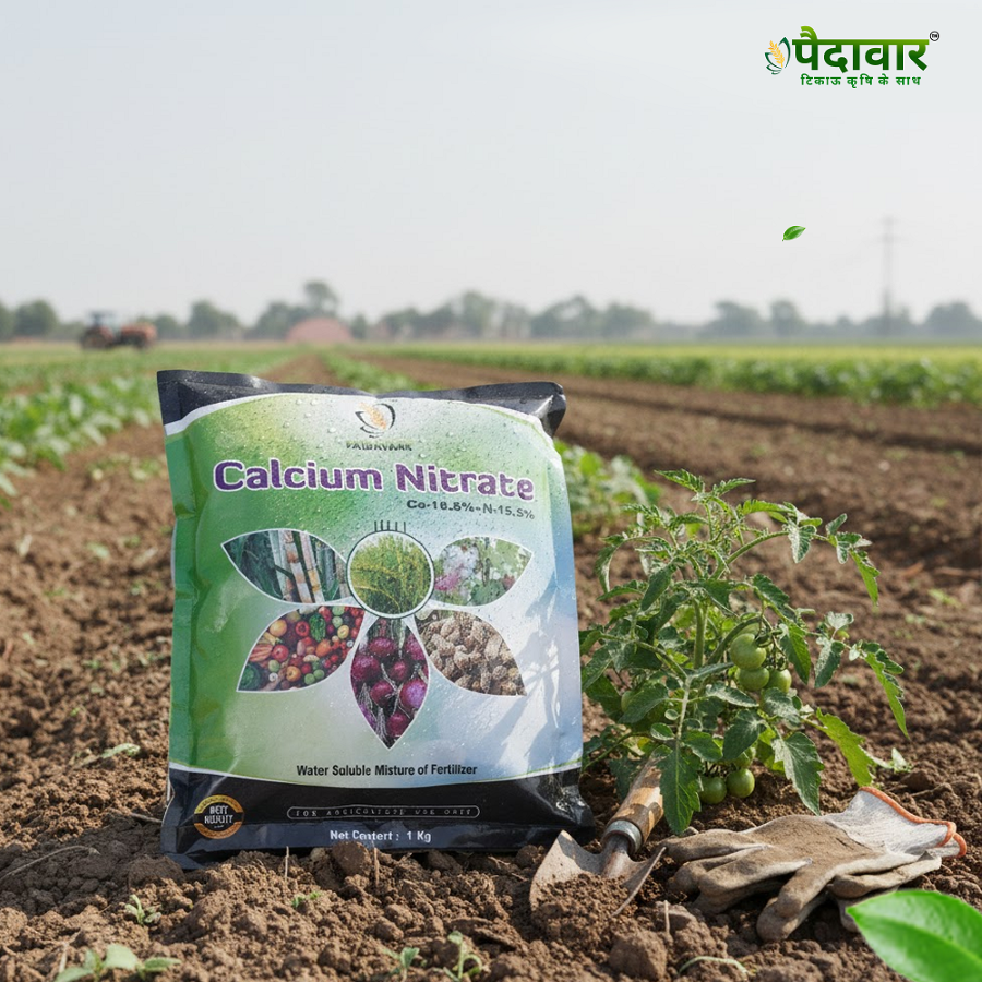 Paidavaar Calcium Nitrate Fertilizer (Ca-18.8%+N-15.5%) is a highly water soluble, quick-acting, dual-nutrient fertilizer that provides plants with readily available calcium and nitrate nitrogen. It is essential for strengthening plant cell walls, improving fruit firmness, preventing physiological disorders like blossom end rot and bitter pit, and ensuring steady plant growth. Suitable for fertigation, foliar spray, and soil application across various crops.