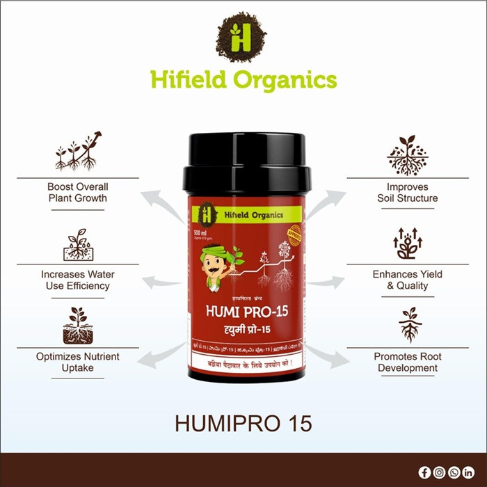 Hifield Humi Pro-15 Bio Stimulant is a premium Liquid Humic Acid for Soil Health, Nutrient Uptake & Vigorous Crop Growth, enhance soil productivity and plant performance with Humi Pro 15, a premium liquid humic formulation designed to improve soil structure, boost nutrient absorption, and stimulate healthy plant growth. Ideal for growers looking to strengthen soil biology and crop vigor, Humi Pro 15 delivers consistent results across vegetables, fruits, ornamentals, turf, and commercial row crops.