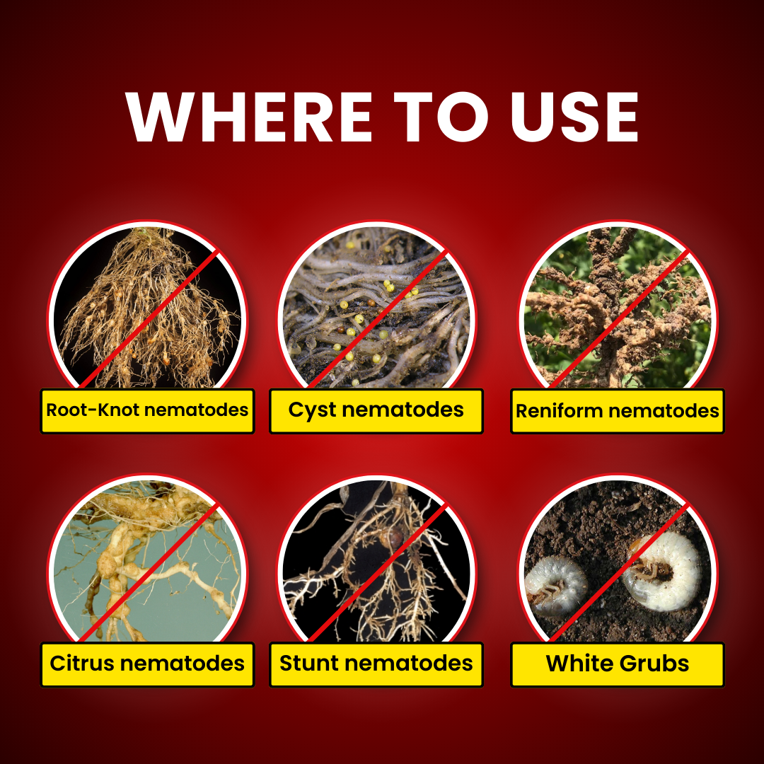 This product is suitable for use in integrated pest management (IPM) programs and supports sustainable agriculture by reducing dependency on chemical nematicides.