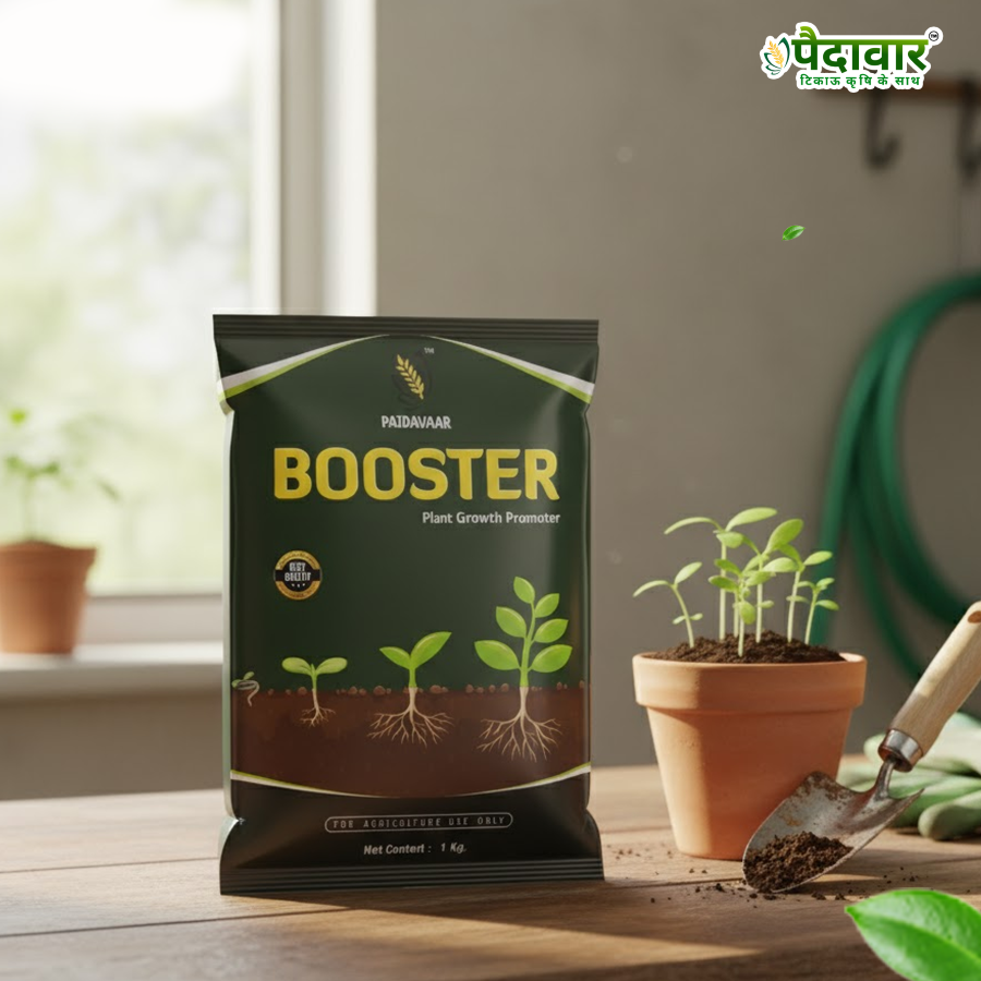 Paidavaar Booster Fertilizer Plant Growth Promoter: Booster is a specially formulated plant growth promoter designed to enhance vegetative growth, flowering, and fruiting in a wide range of crops. It contains a unique blend of nitrobenzene (25%), seaweed extract (5%), humic acid (5%), and other synergistic ingredients (48%) that work together to improve plant health and productivity.