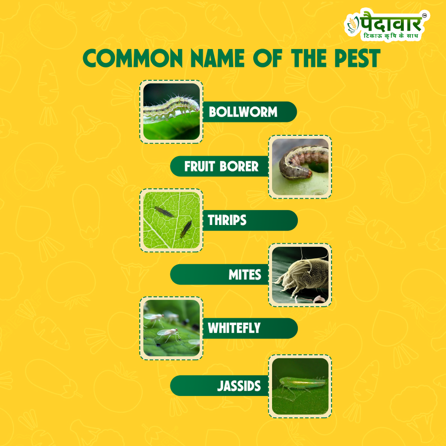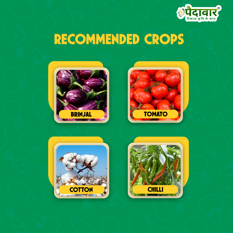 Targeted Pests: Effective against aphids, thrips, whiteflies, fruit and shoot borers, leaf miner, mealybugs, caterpillars, spider mites, cutworms, bollworms, armyworms, scale insects, and other sucking and chewing pests.