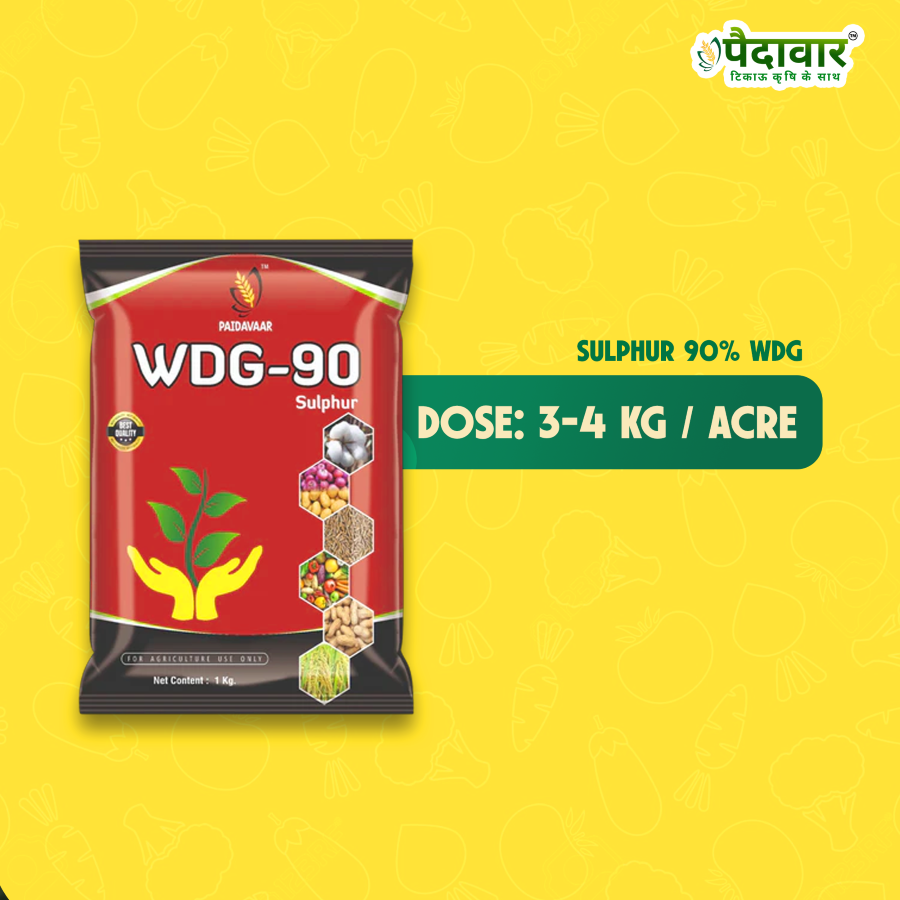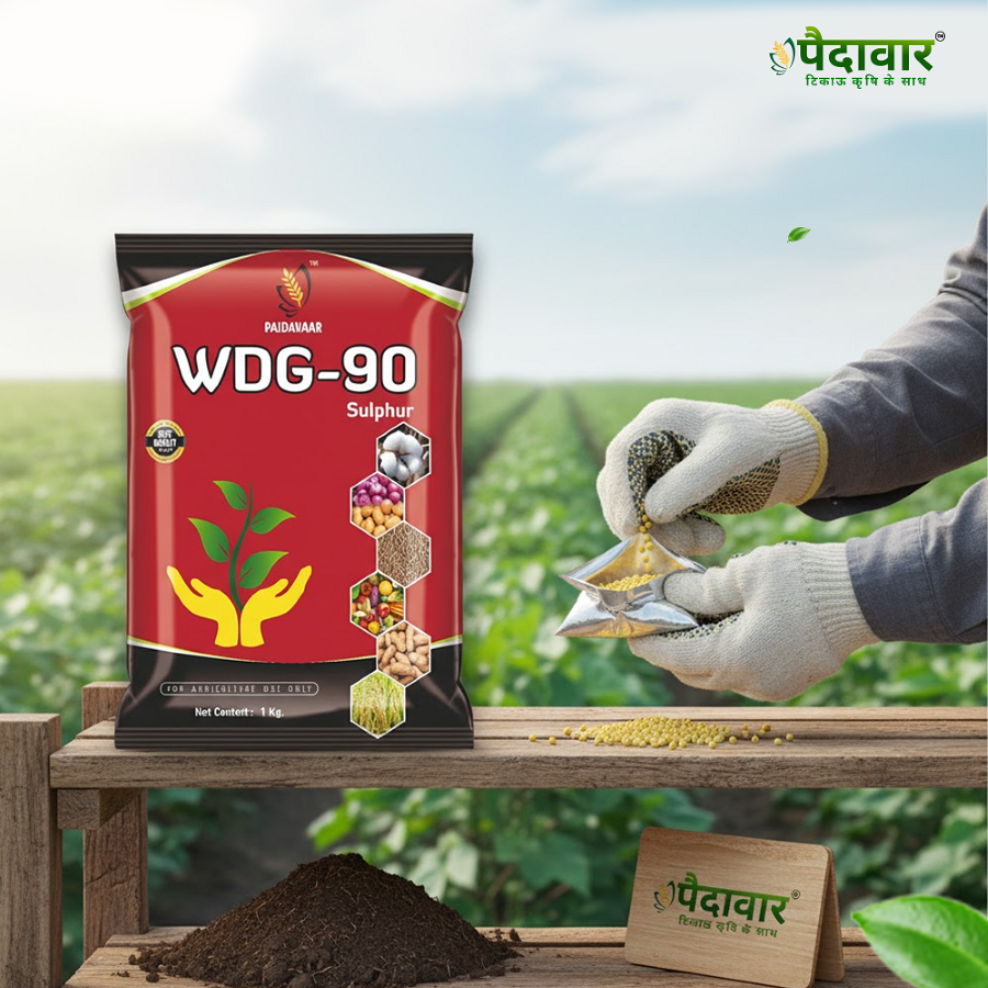 Paidavaar WDG-90 (Sulphur 90% WDG) Fertilizer is a highly concentrated macronutrient formulation designed to provide essential sulphur to crops in an easily available form. It plays a vital role in enhancing crop yield and quality by improving protein synthesis, chlorophyll formation, and overall plant metabolism. Apart from being a plant nutrient, sulphur also acts as a preventive and curative fungicide and miticide, helping control powdery mildew, rusts, and various mite infestations.
